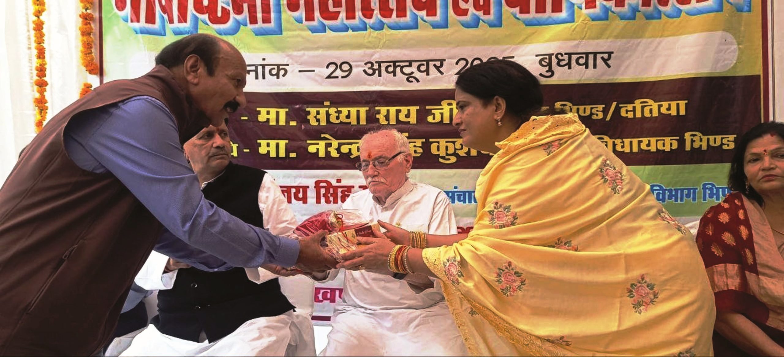 भिण्ड, 29 अक्टूबर। गौ ग्रास के लिए व्यवस्था करना प्रत्येक सनातनी का कर्तव्य है, परंपरा के अनुसार हमारे घरों में भोजन पूर्व एक रोटी निकालने की प्रथा चल रही है, हमें इसे और गति देनी होगी, जन-जन को गौरा के लिए एक अंश दान करना होगा तब जाकर हमारी गौ माता का पेट भर सकेगा। यदि हमने भी मन में ठान लिया तो गौ माता को दर दर नहीं भटकना पड़ेगा। यह बात विधायक नरेन्द्र सिंह कुशवाहा ने गोपाष्टमी के पावन पर्व पर गोपाल गौशाला में मुख्य अतिथि की हैसियत से कही उन्होंने कहा कि शासन स्तर पर शीघ्र गौ अभ्यारण की योजना अमल में लाई जाएगी। उन्होंने गोपाल गौशाला की प्रबंधन में 51 हजार की राशि भी भेंट की।