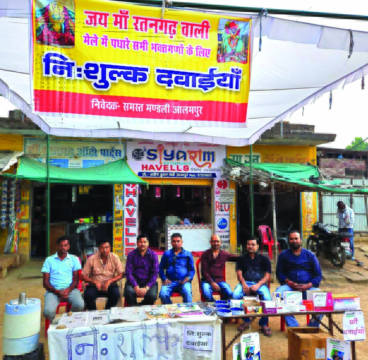 रतनगढ़ माता माता मन्दिर पर आयोजित विशाल मेला में माता के दर्शन करने के लिए आने जाने वाले दर्शनार्थियों को नगर के कुछ युवाओं द्वारा स्थानीय देभई चौराहे पर काउंटर लगाकर दर्द, बुखार, उल्टी, दस्त सहित अन्य प्रकार की दवाइयां वितरण की गई है।
