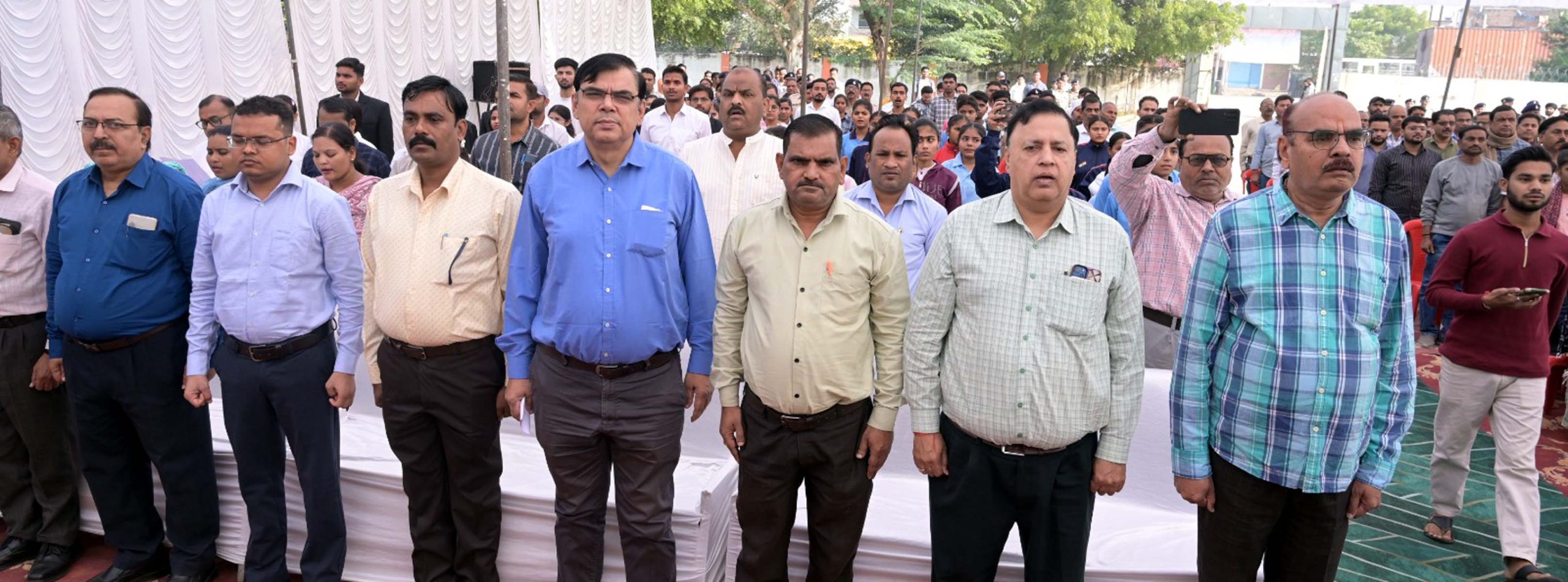 भिण्ड, 07 नवम्बर। राष्ट्रगीत वंदे मातरम की 150वीं वर्षगांठ के उपलक्ष्य में प्रधानमंत्री एक्सीलेंस शा. एमजेएस महाविद्यालय भिण्ड में नवीन एवं नवकरणीय ऊर्जा मंत्री राकेश शुक्ला, विधायक भिण्ड नरेन्द्र सिंह कुशवाह की उपस्थिति में राष्ट्रगीत का गायन किया गया। इस दौरान कलेक्टर किरोड़ीलाल मीना, पुलिस अधीक्षक डॉ. असित यादव, सीईओ जिला पंचायत सुनील दुबे, भाजपा जिलाध्यक्ष देवेन्द्र सिंह नरवरिया, नगर पालिका अध्यक्ष वर्षा बाल्मीकि सहित अन्य अधिकारी, जनप्रतिनिधि, गणमान्य नागरिक एवं छात्र-छात्राओं ने वंदे मातरम का गायन किया। इस अवसर पर उपस्थित जनों को स्वदेशी संकल्प की शपथ दिलाई गई। कार्यक्रम में नई दिल्ली से प्रधानमंत्री के कार्यक्रम का सीधा प्रसारण देखा एवं सुना गया।